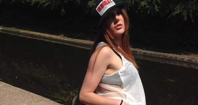 Slutty attention bitch Samantha peeing by the river