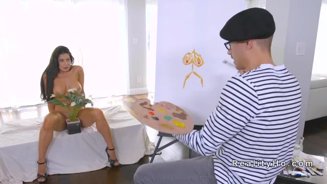 Fake artist Xander Corvus pretends painting naked gigantic boobs brunette Mommy Nikki Capone for money and then she sucks and rides his gigantic dick in various cowgirl positions