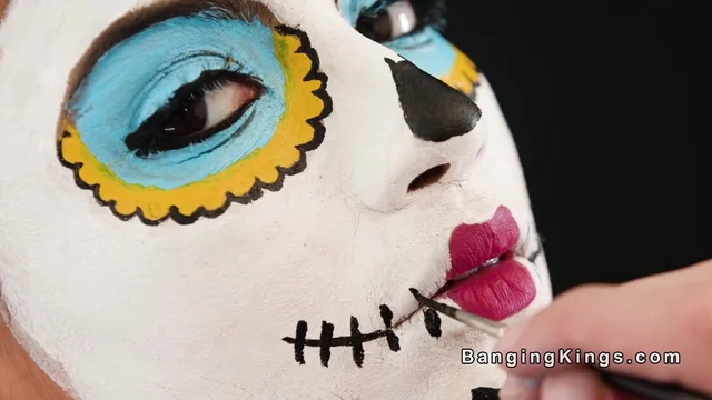 Sexy brunette Latina Michelle Martinez loves body paint and comes to artist who gives it but then she adores his colossal penis too so she sucks and fucks it in his studio