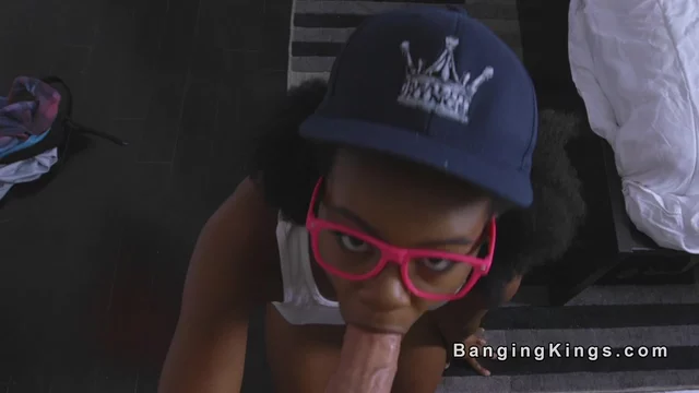 Sean Lawless wanking off and getting blow from hot ebony babe Haylee Wynters in tank top and hotpants then with enormous penis he screws her shaved pink piss hole in bed
