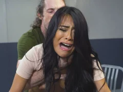 The dude arrested a sexy brunette girl and talked her into taking off the clothes before fucking her delicious piss gap in his office