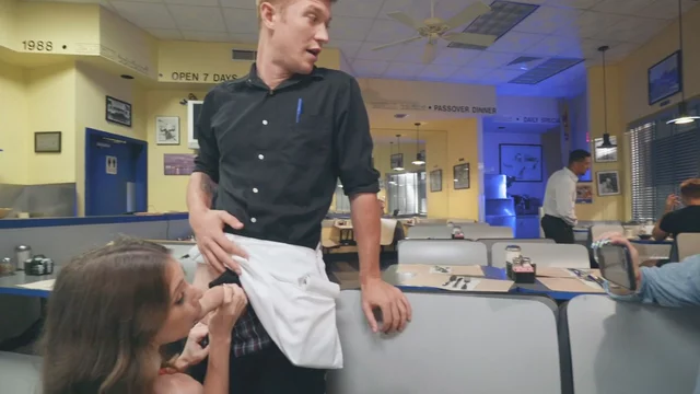 Anya Olsen Blows a Expansive Cock in Restaurant