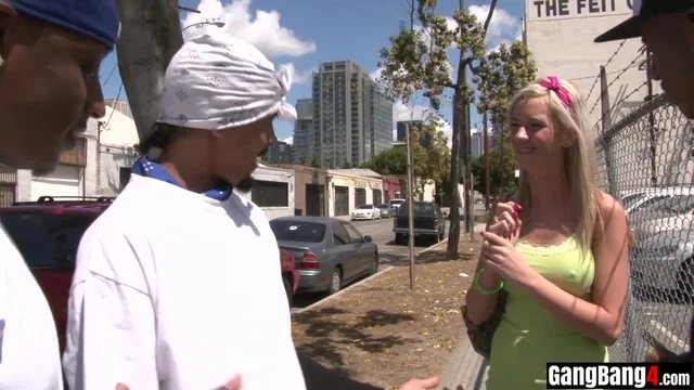 Blonde braces teen Kaylee Hilton with expansive melons invited to a wild interracial orgy party where a bunch of enormous ebony cocked guys double penetrated her