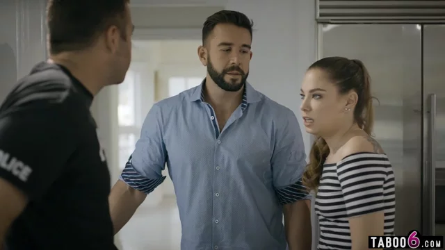 Cop knew about brothers fiance Bobbi Dylan her past and exploited it once he stepped out to get some food She gagged on his grand rod and got it deep inside her cunt before he gave her a huge creampie jizz