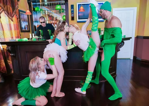 Magnificent besties Katie, Serena and Naomi sex to hunt for stick and today they stay up in an Irish pub. James is there to screw them all at once at the pub!