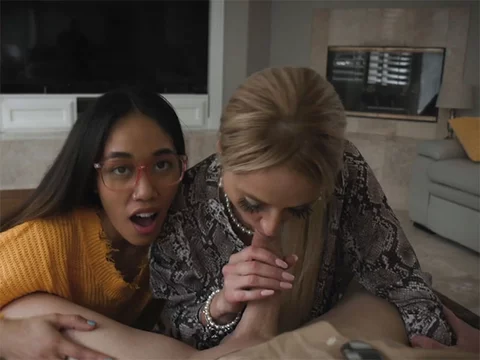 Perfect petite babe Aria Skye introduced herself and got fucked by a perverted step parents Misha Mynx and her guy Naughty teen massage guys feet and knelt for a cock before horny babes rode guys dick