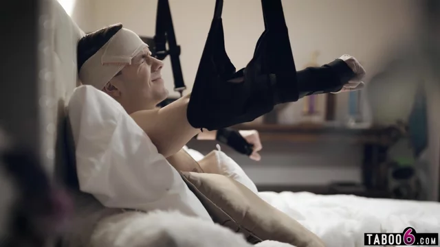 Mom helps her injured and frustrated teen stepson to get off He was in an accident and could not do anything anymore so stepmom Kit Mercer gave him a handjob and later when he was better he fucked her pussy with his big cock missionary