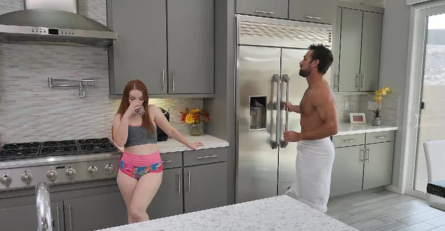 There stepdaughter Cleo Clementine is always checking her stepdad out while I walk around the house, and when he accidentally drop my towel, her jaw drops. She knows he is going upstairs to bang her stepmom, Lauren Phillips, so she follows closely behind to watch her stepdad fuck her hard.