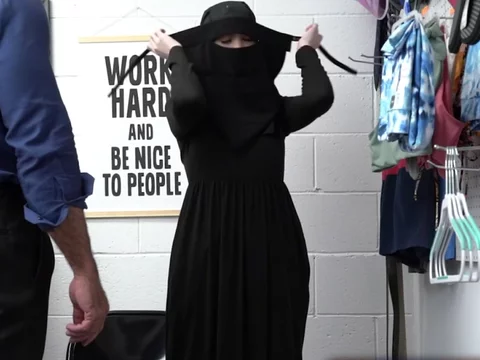 Security officer Justin brings Delilah Day to the back to confront her when Delilah denies everything officer Justin shows her footage of her piling expensive underwear under her hijab Delilah insists they cant make her take her hijab off since its her religious right
