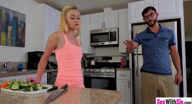 Blonde teen stepsister Kenzie Kais stepbrother is angry at her so she offers to give him a blowjob to make it up to him Unzipping his stiffie she gets down on her knees and starts sucking She lets him grab her ass and peels off her shorts and gets fucked