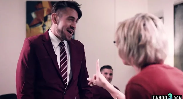 Four unruly students pressure their scared blonde mature teacher Dee Williams with big natural boobs in glasses into rough gangbang They fuck her face hard then he shaved pussy in several positions during she gives them deepthroat blowjob