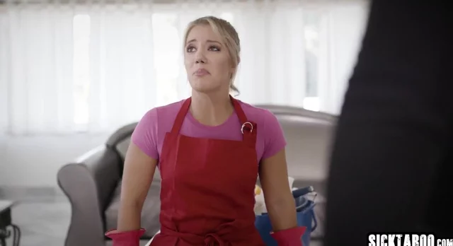 Two burglars fucked sexy blonde maid and she pleased dirty guys