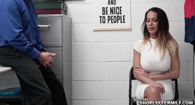 Mckenzie Lee is an MILF who tried to steal an expensive ring in a jewelry store. Officer Jack Vegas caught her, and brought her to his office. There is only one way to get out of the her trouble, a cavity search and then bang with him he cums