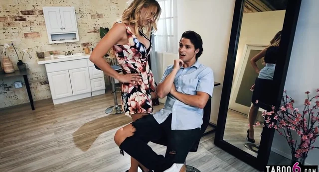 Virgin teen Kylie Rocket gets manipulated by dirty nephew and busty aunt Katie Morgan who fucked them together in a threesome in her make over salon and she lost her virginity right then and there He licked her tight hairy pussy first before fucking her!