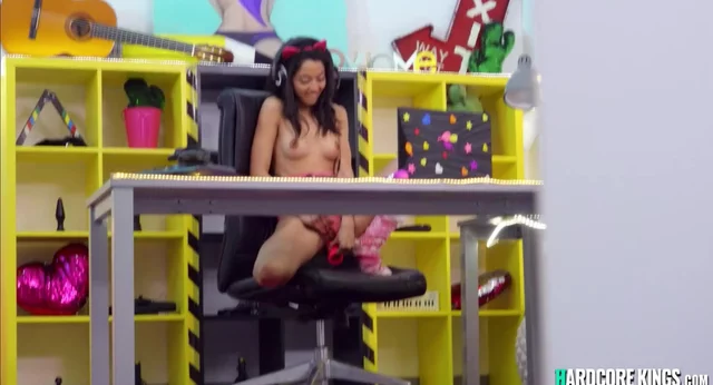 Sexy brunette teen Latina Scarlet Rebel masturbating solo when her bf caught her and then with big dick fucked her tight trimmed pussy