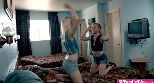 Stepdad punishes his petite teen stepdaughter Chloe Cherry during their family vacation by spanking her ass and fucking her tight pussy! Mom came in the hotel room but had a rough day and did not even notice what they were doing!