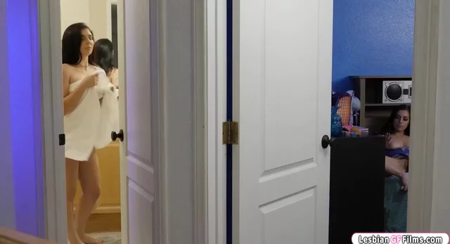 Petite brunette spies and masturbates on her hot roommate.She confesses and gets her first lesbian kiss.Shes masturbated by her bff while sucked on her tits.She set her hairy pussy on her face and cums.Then her bestie toys her clit until she squirts