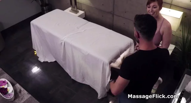 This massage parlor makes all their clients happy. While the gorgeous milf masseuse gives you a back rub a second masseuse under the table pleases your cock!