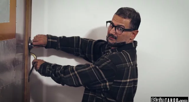 Busty milf finds out her super is her stalker.To keep him calm she will do what he wants.The brunette cougar is reluctant when he squeezes her nipples.She deepthroats his cock while her licks her pussy in a 69er and then lets him fuck her shaved cunt