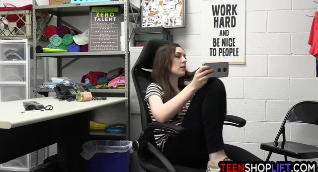 Social media challenge got teen Raven Right busted for stealing items from a store and the Lost Prevention officer had her right where he wanted The annoying little brat did not know how serious the situation was until he showed her his cock!