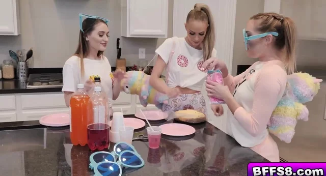 Sera, Katie and Emma got to share David Lee's long dong, after a fun game they played. The girls took turns in sucking him off, and riding on his prick, bouncing up and down nice and good, until he almost cums