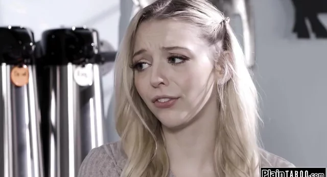 Petite small tits blonde barista wants to prove to her bf she can get freaky.She takes his big cock out and deepthroats behind the coffee counter.She masturbates and gets rimmed while helping a customer.She then gets her shaved pussy fucked