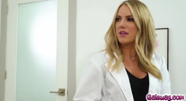 Candice examines Blake's vagina and finds nothing wrong. Scrambling, Blake says she was there to see Candice because she has a thing for her. Much to Blake's shock, Candice says she feels the same way and wants to have sex with her right now! So they kiss and start filling each other's pussies