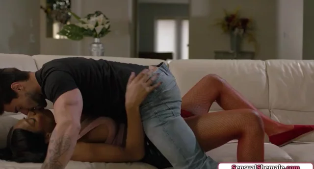 Big Tits black ladyboy Jexxica Blake kisses her stepbro and he deepthroats the tgirls grand rod.The dude drills his transsexual stepsisters wild stick and then the brunet tgirl asslicks him and gives him a bj.Then the ebony tranny barebacks him