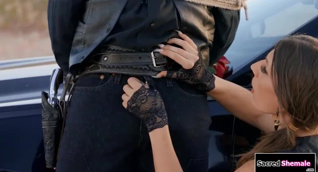 Big Boobs transsexual cowgirl Jade Venus rides a sheriff and deepthroats his expansive dick outdoors.He asslicks the uniformed tgirl and then gives her a blow.Then the male barebacks the brunet ladyboy as the substantial juggs tranny is laying on top of his auto