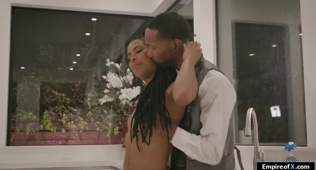A brunet black lets her ebony neighbor use her phone for a bit.She scenes her nude back and lets him caress her butt,eat her woolly cunt.She goes down and blowjobs his big black dick then lets him bang her wild from behind.They do 69 while she blows his balls.