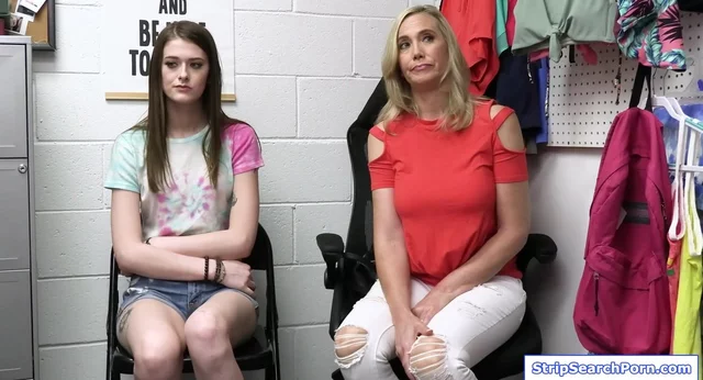 A teen and her stepmother were caught stealing items from the store.The security officer conducts strips explore then asks them to cooperate.The mommy was asked to eat her stepdaughter while the dude screws her.Then dude bangs the brunet women tight kitty