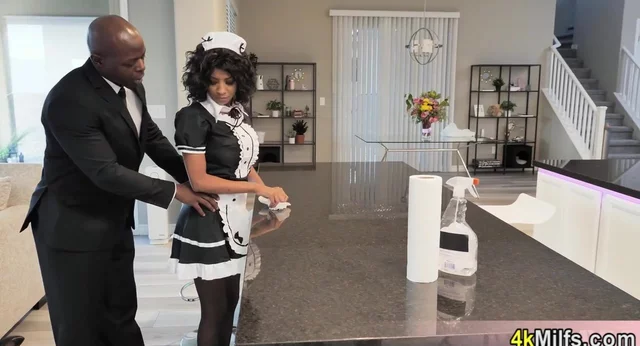 Tremendous boobed black MOMMY virgin has to serve her BIG BLACK COCK boss