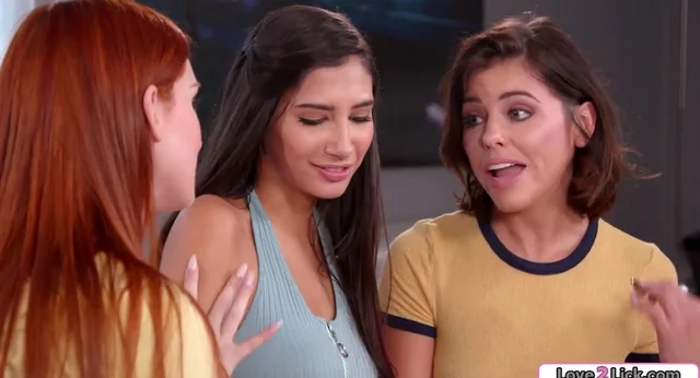 Redhead teen adores to check current things and kisses brunet bff.She blows her mountainous melons and then licks her vagina.Their skinny friend joins them in a three way and the redhead blows her skinny juggs and faps her puss.Then she gives oral as shes rimmed