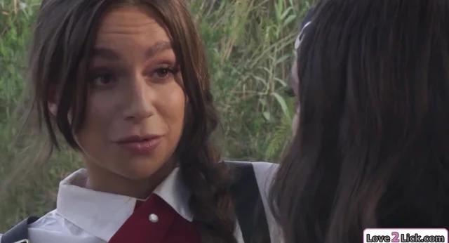 ditch class and go to the skinny brunettes house.They uniformed girls kiss and she blows the tattooed women large boobs.The big tits brunet licks her woolly piss hole as she fingers it and then the petite boobs lady faps and fingers her twat