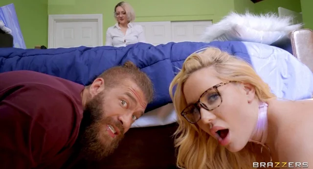 When his housewife catches him trying to sneak his mistress, Savannah Bond, out of the house, Xander Corvus manages to convince her that she's the recent nanny. Xander's wifey doesn't think the blonde bombshell in the skin-tight dress looks dressed for the part, but the house is such a mess she's just eager to put her to job. Savannah, however, isn't glad with having to do chores, and instead looks through Xander's wifey's drawers, trying on her hot lingerie and pleasuring herself with a vibrator and her breast pump! Once Xander sees what she's up to he can't assist himself and the two have sneaky love behind his wifey's back.