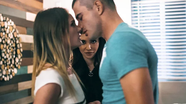 Brunet is obsessed with a blonde and makes her bff screw her as she watches.She dominates the dude to play with her slim juggs and then the slim lady deepthroats his great penis.The stalker joins in a threesome and licks her kitty.Then the girl is rammed