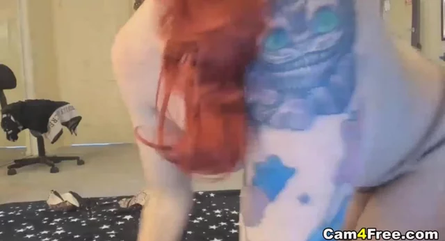 Red Haired Lady With Blue Dildo