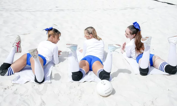 This guy is going to have the hottest day of his life. He is the volleyball coach for these dazzling ladies and they are looking forward to a four-some!