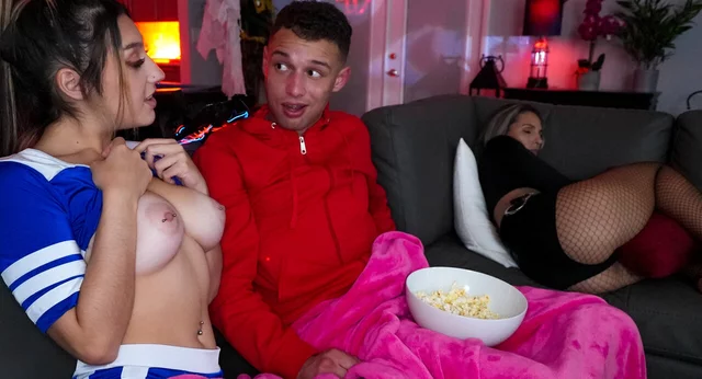 Last night Sunday we were watching a scary video when my girlfriends stepmother totally invited herself into a three way with my girlfriend and myself! Her stepmother is banging sexy so I had absolutely none hesitation to accept their invitation and screw the bageesus out of these pleasing two pussies.