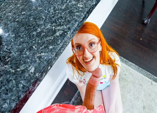 Hot Cherry Fae on her knees sucking stepbros expansive cock