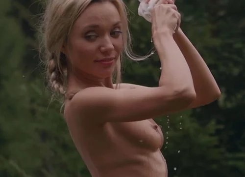 Skinny blonde all natural Russian lady Zhenya Belaya with slim tits is taking off her wet clothes an she is hanging out them then the little nude charm is posing outside to introduce us every secret of her tight body