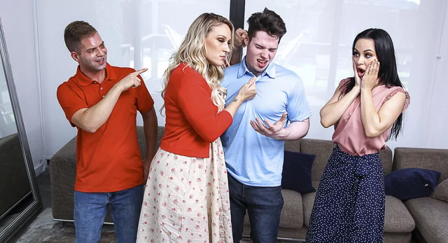 Mama's Crystal Race and Charley Hart discipline their misbehaving stepsons Nicky Rebel and Alexander Vega by sitting on their faces with their chrubby asses! The absurd scene turns even crazier booty the boys inaugurate screwing each other's moms!