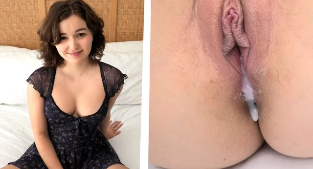 This sweet teen With SUPERB all-natural 34B titties gets her slit filled with jizz in this creampie movie.