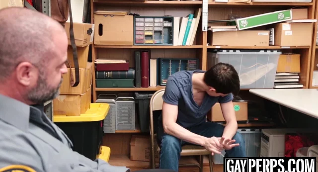 Suspect was caught stealing at a local market. As punishment the twinky male receives raw penis both in his mouth and in his small butt gap.