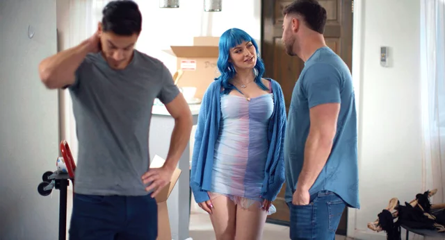 Cheating on his curvy gf Jewelz Blue totally back fired when his relative Seth Gamble jizzed over to their house and he made up one more lie about who he was but things turned even worse for him when Seth made the fine move on her!