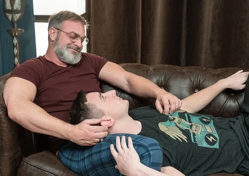 Captain DILF and his teen stepson are on the sofa cuddling each other.After that,they begin kissing each other and he lets his stepson throat his wild expansive dick passionately.In return,he screws his tight butt so deep and rough.