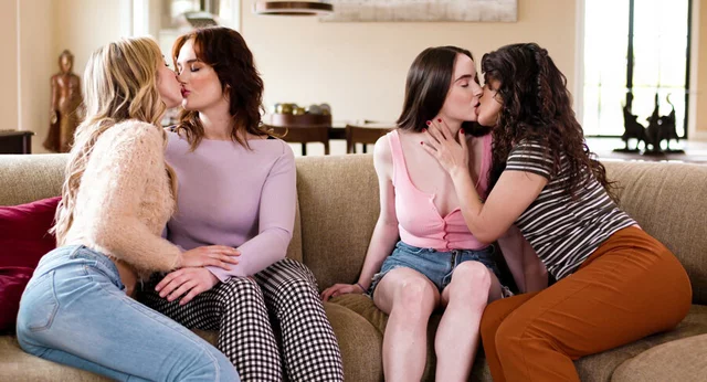 Im a bit shy when my stepmother uncovers the crush I have on my two former babysitters.But are they really suggesting all four of us have love?They launch to kiss me an my stepmother and I eat and facesit them.They want to look me get rimmed by my stepmommy