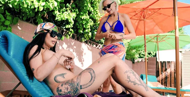 Sexy blonde meets her latina TS fresh neighbor and they go straight to the room and kiss each other on the bed.After that,she blows the shecock of TS neighbor and in return,she lets her bang her wet twat so deep and wild.