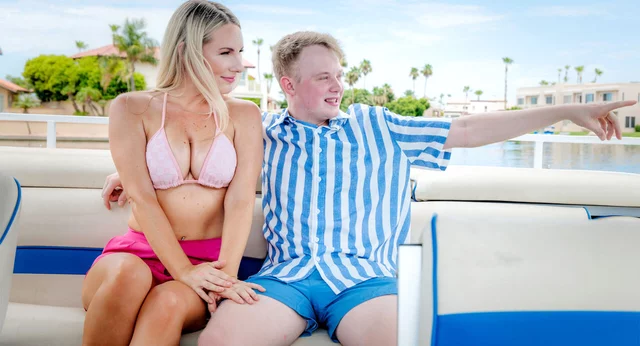 Qualified COUGAR date set up by his stepmother and Bunny Madison was ready for it Jimmy was not getting her hints though but once home this happened! He went down on her and licked that incredible vagina before she returned the favor and they did more!