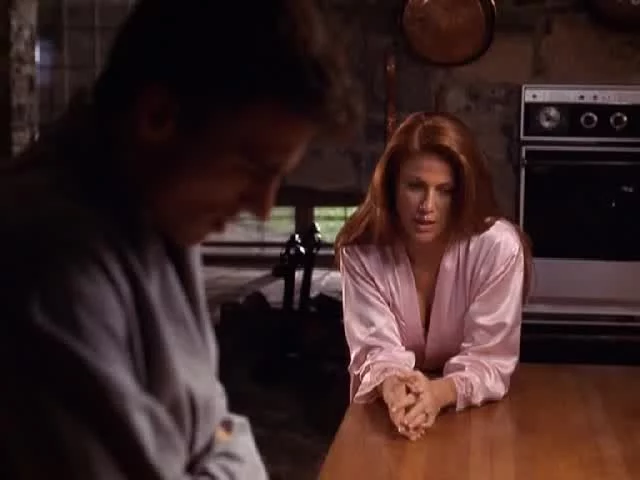 Angie Everhart hot in nightdress showing her cleavage while having hot sex with some guy in two actions. From Horrible Infamous Minds.
